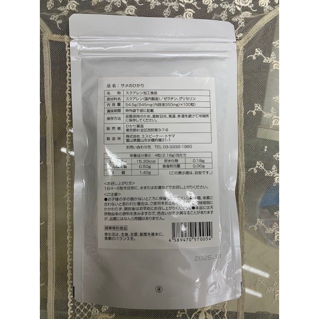 ・ひと粒に99%以上という高純度の活性スクアレンが350mgも含まれているサメのひかりはひかり薬品のオリジナル商品です。